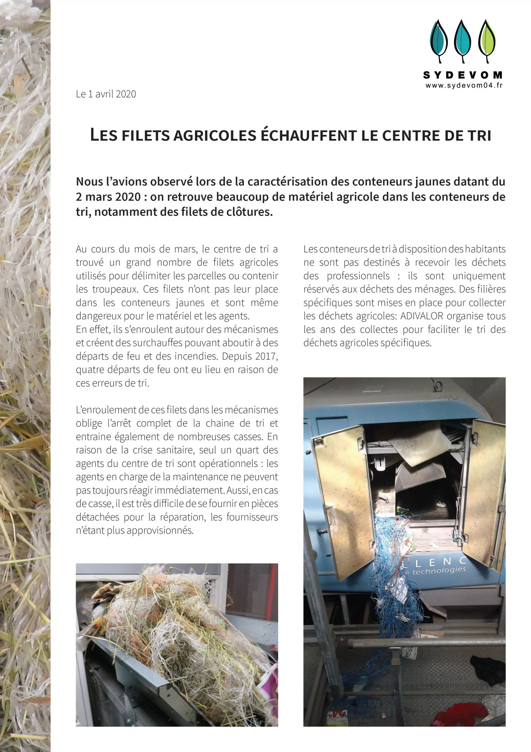 1er avril 2020 – Les filets agricoles échauffent le centre de tri